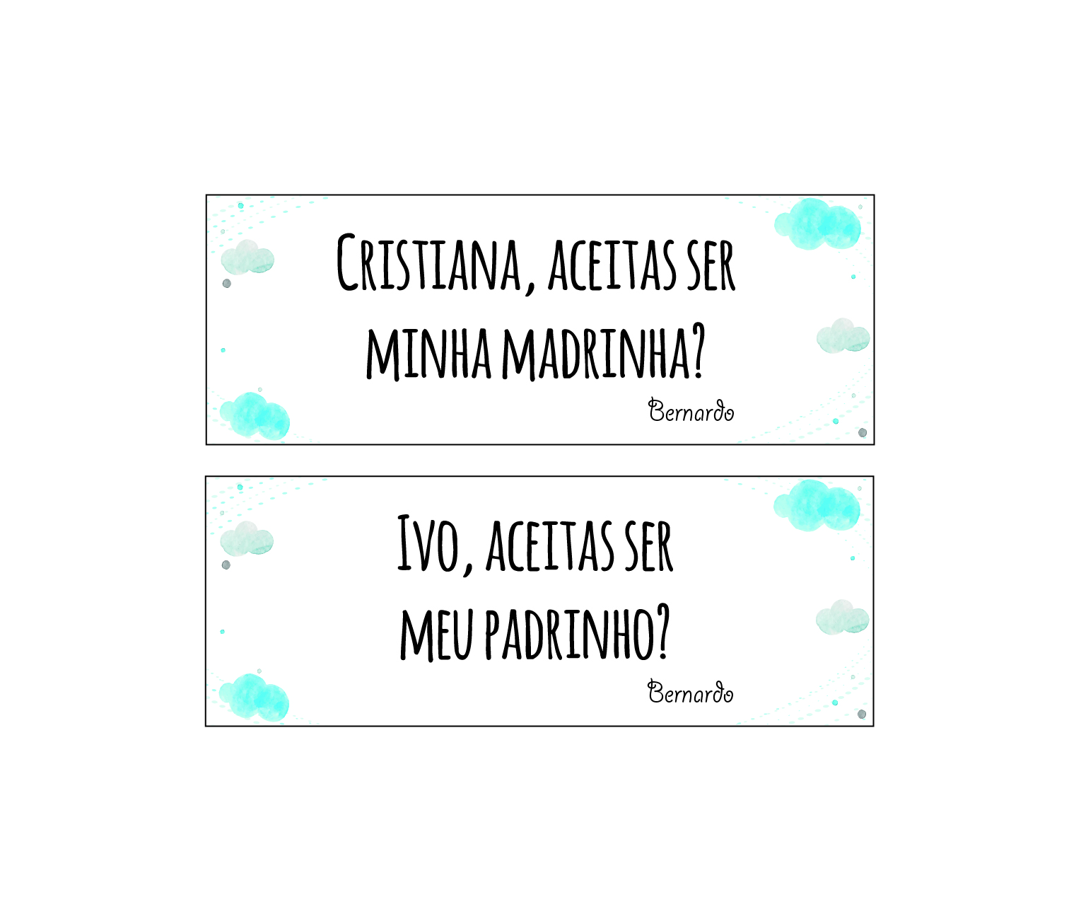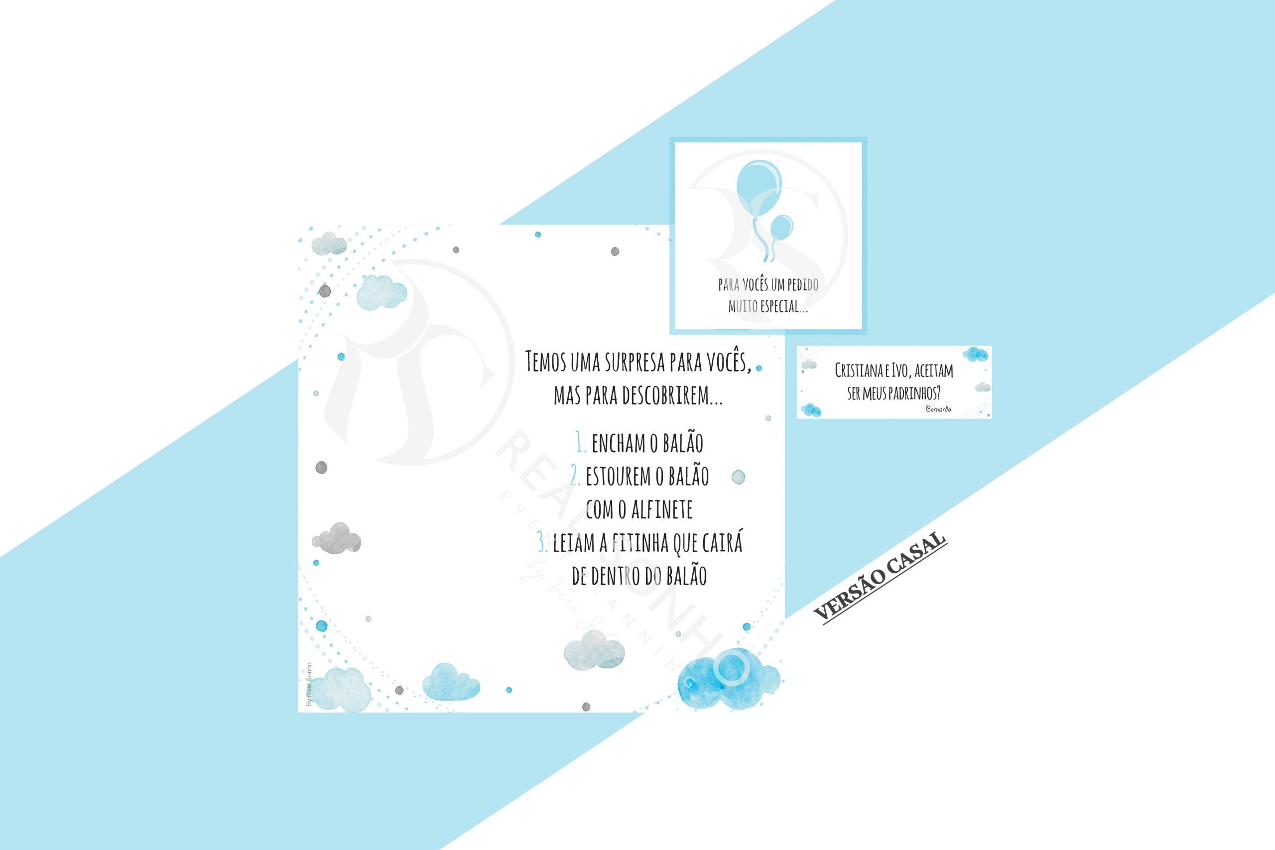 O produto que selecionou é um convite para padrinhos de batismo, por isso, preencha por favor o formulário da secção Dados para o Convite.