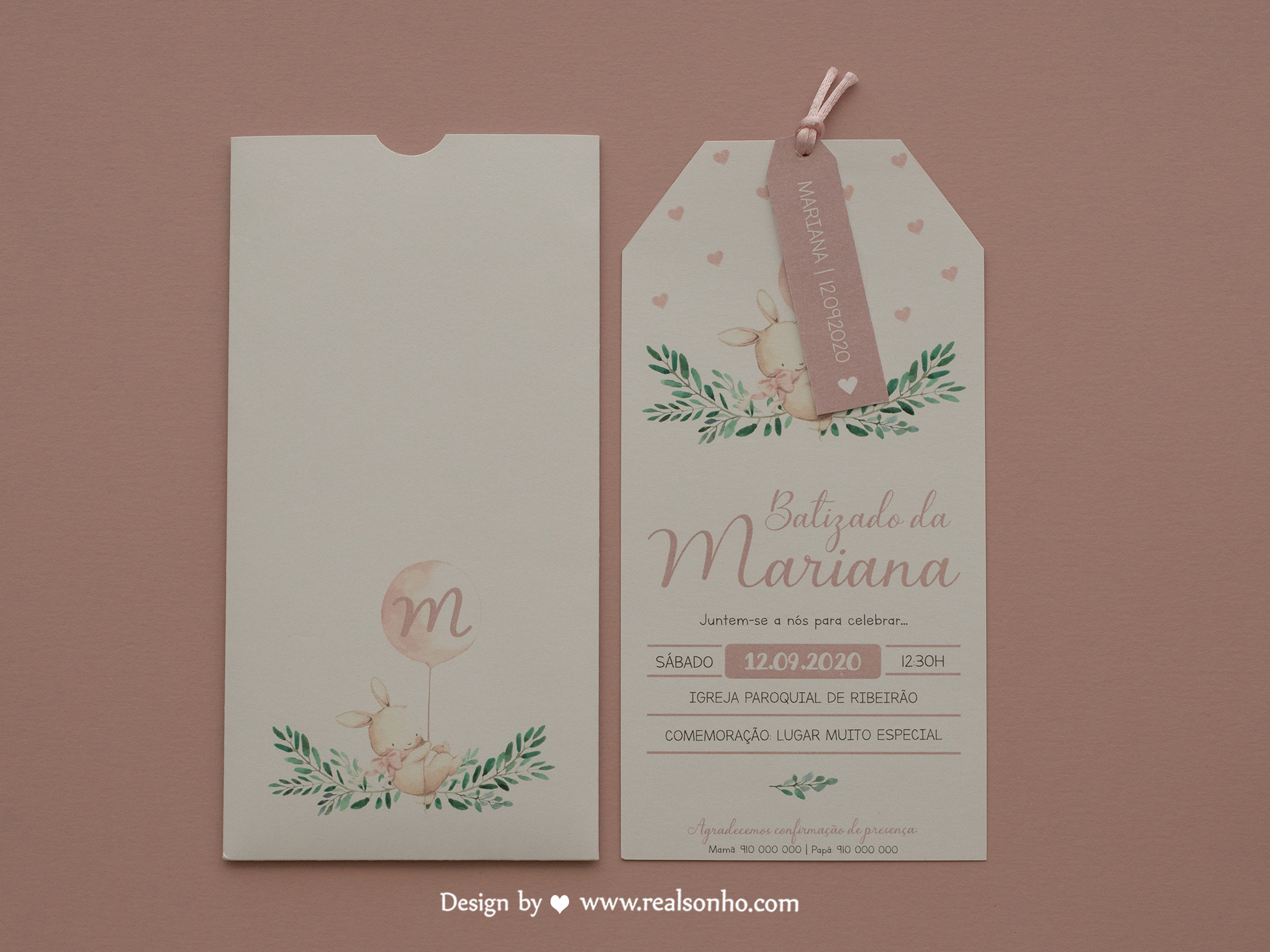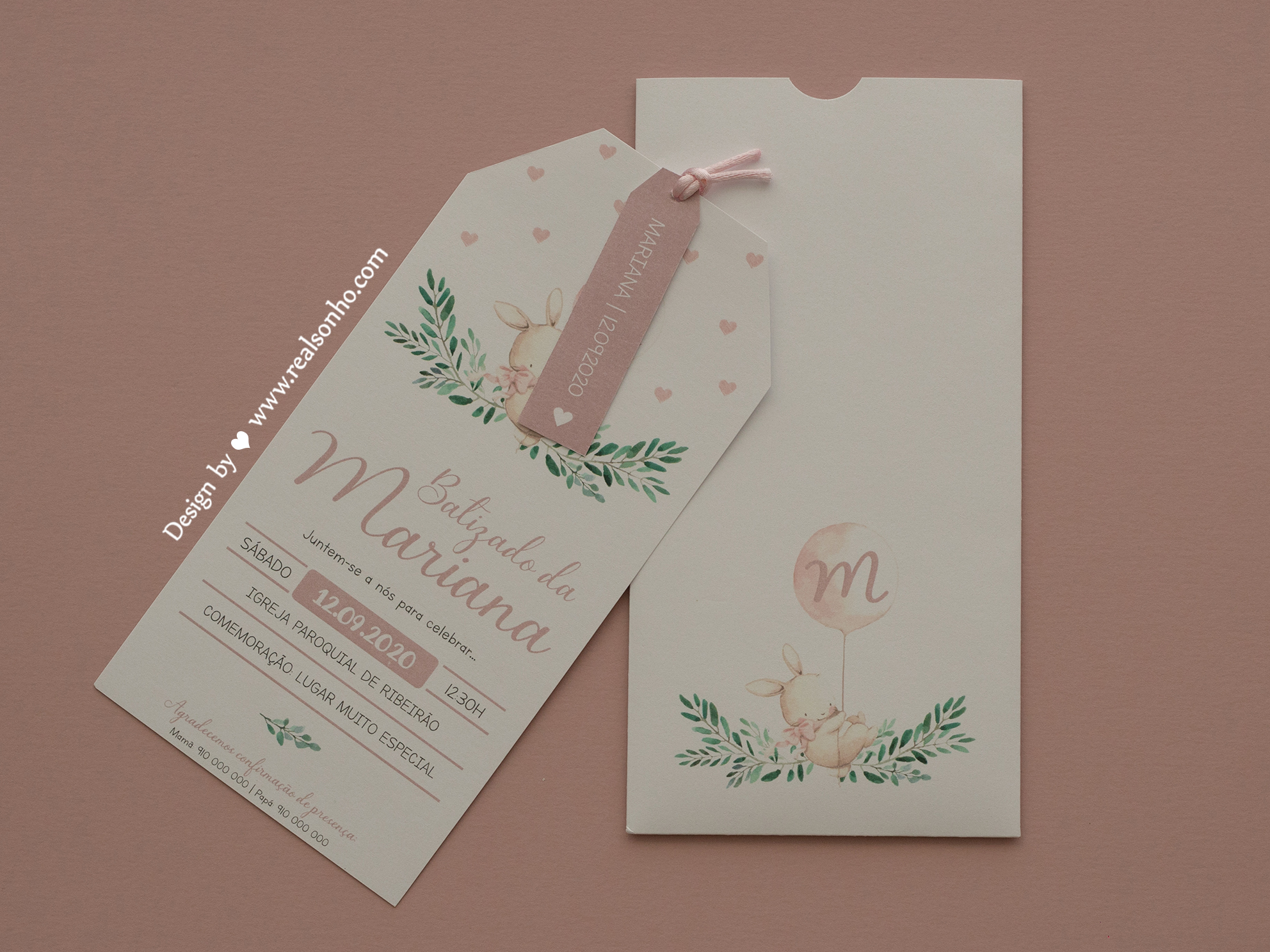Convite de Batizado Coelhinha Rosa | BT-C040 (menina)