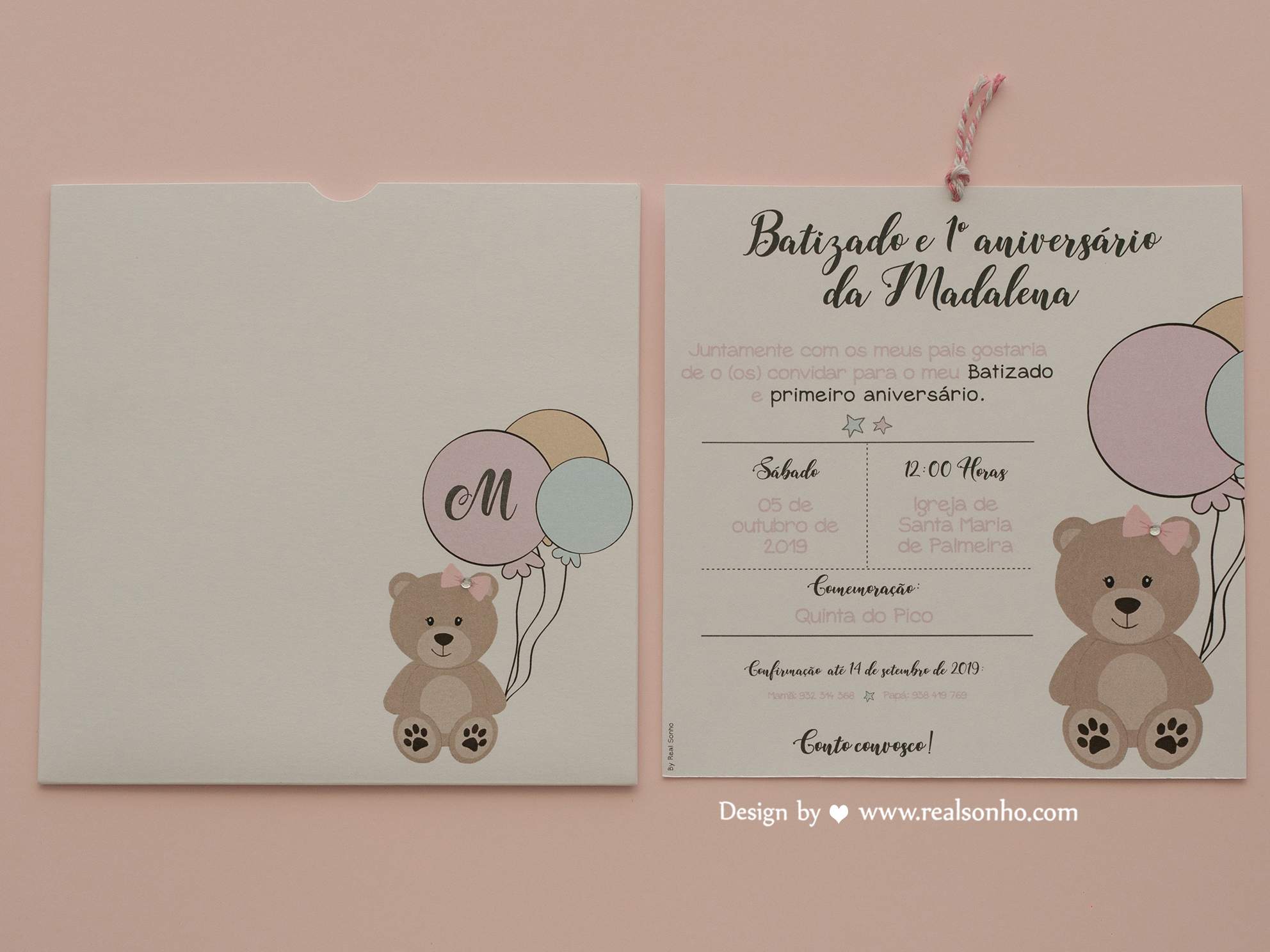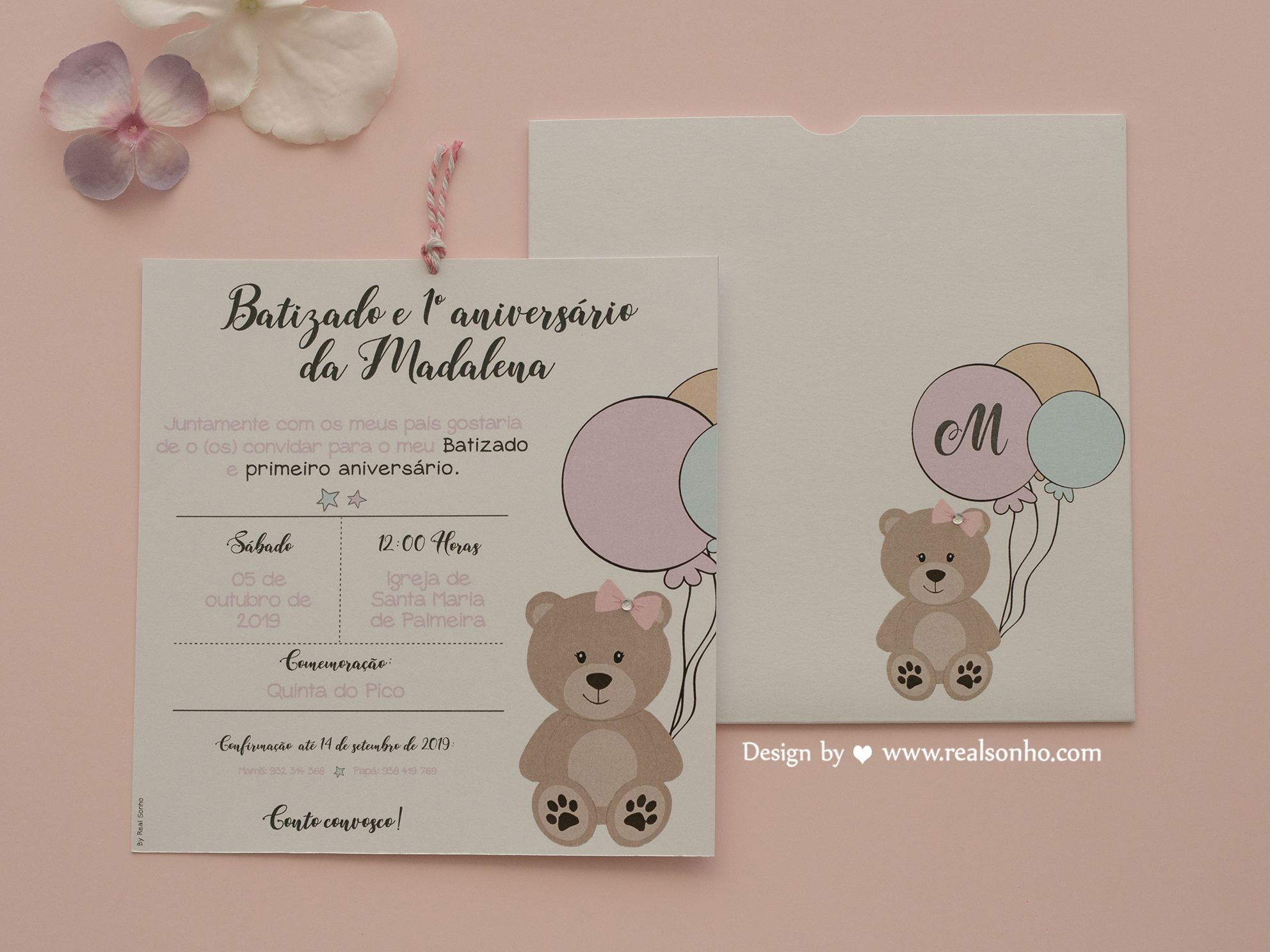 Convite de Batizado Ursinha Rosa | BT-C075 (menina)