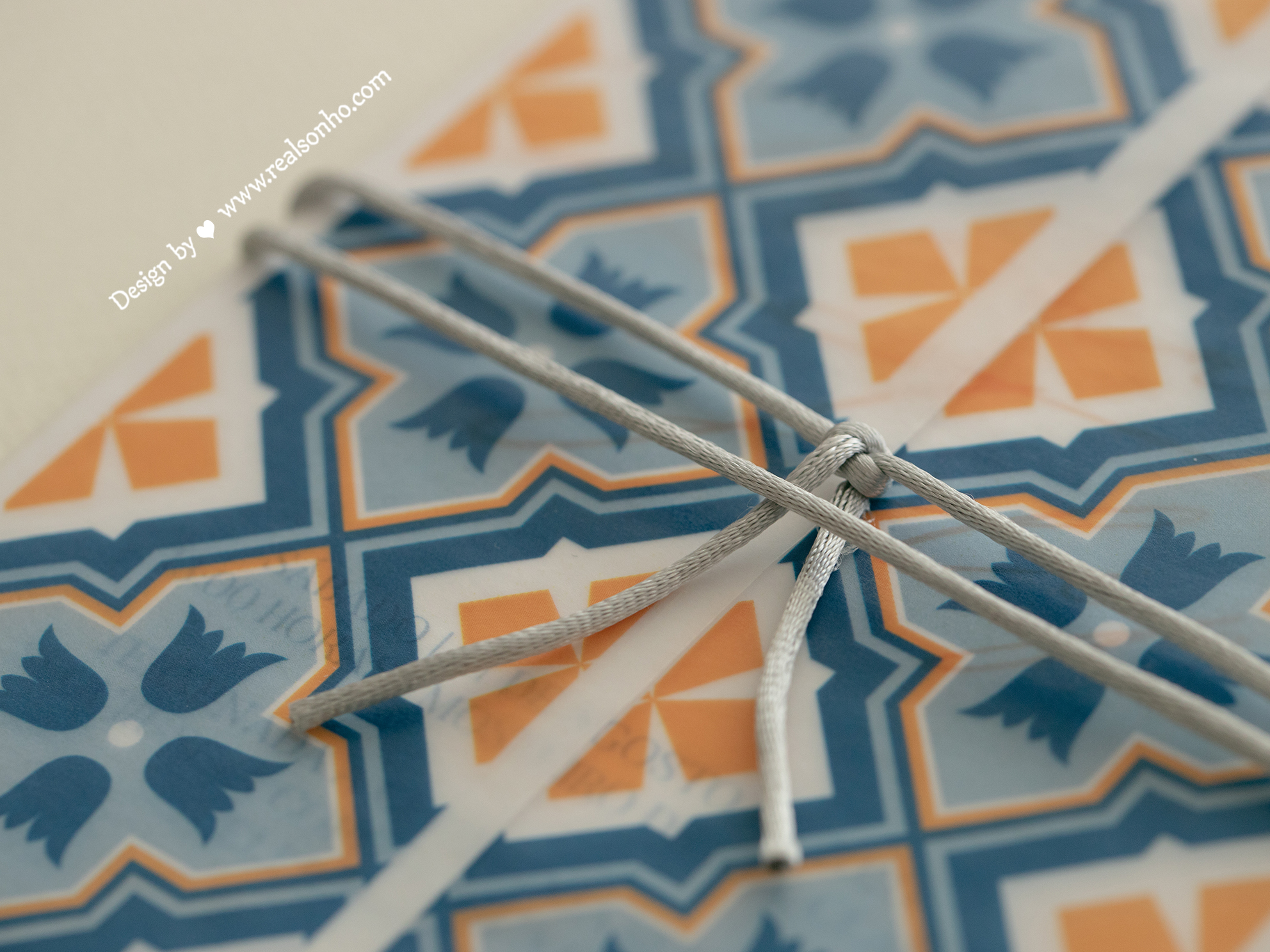 Decoração do envelope: laço em cordão cinza ou outra cor