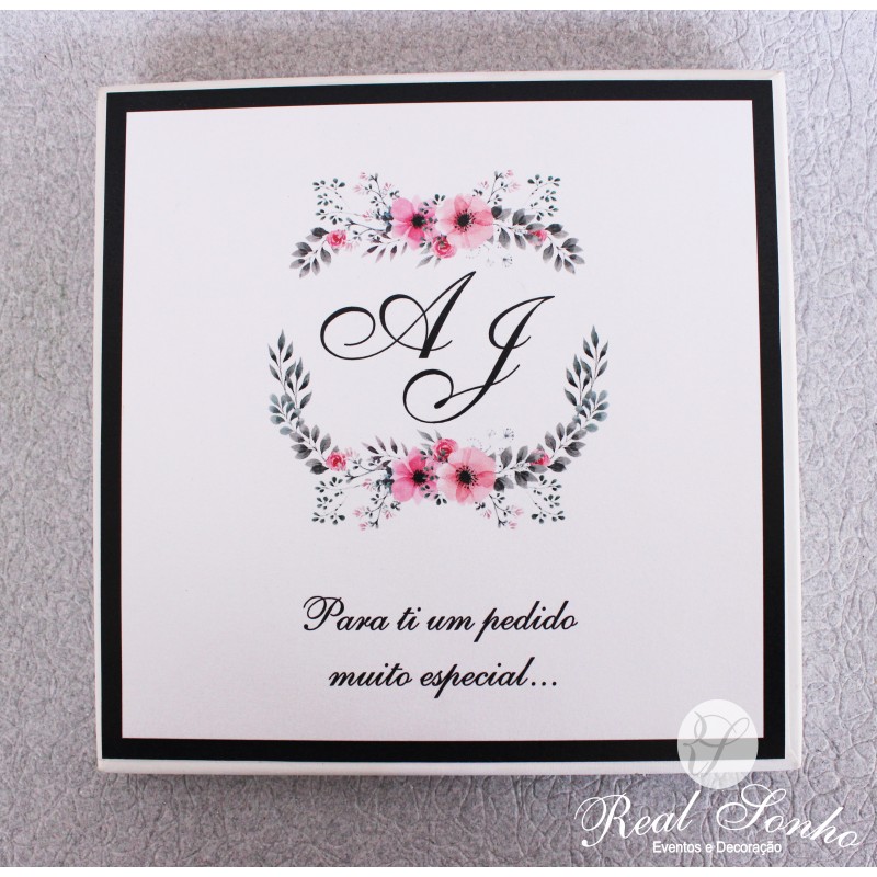 Decoração da caixa: Personalizada em função da coleção que escolher ( o convite da imagem está com o design da coleção Flowers)