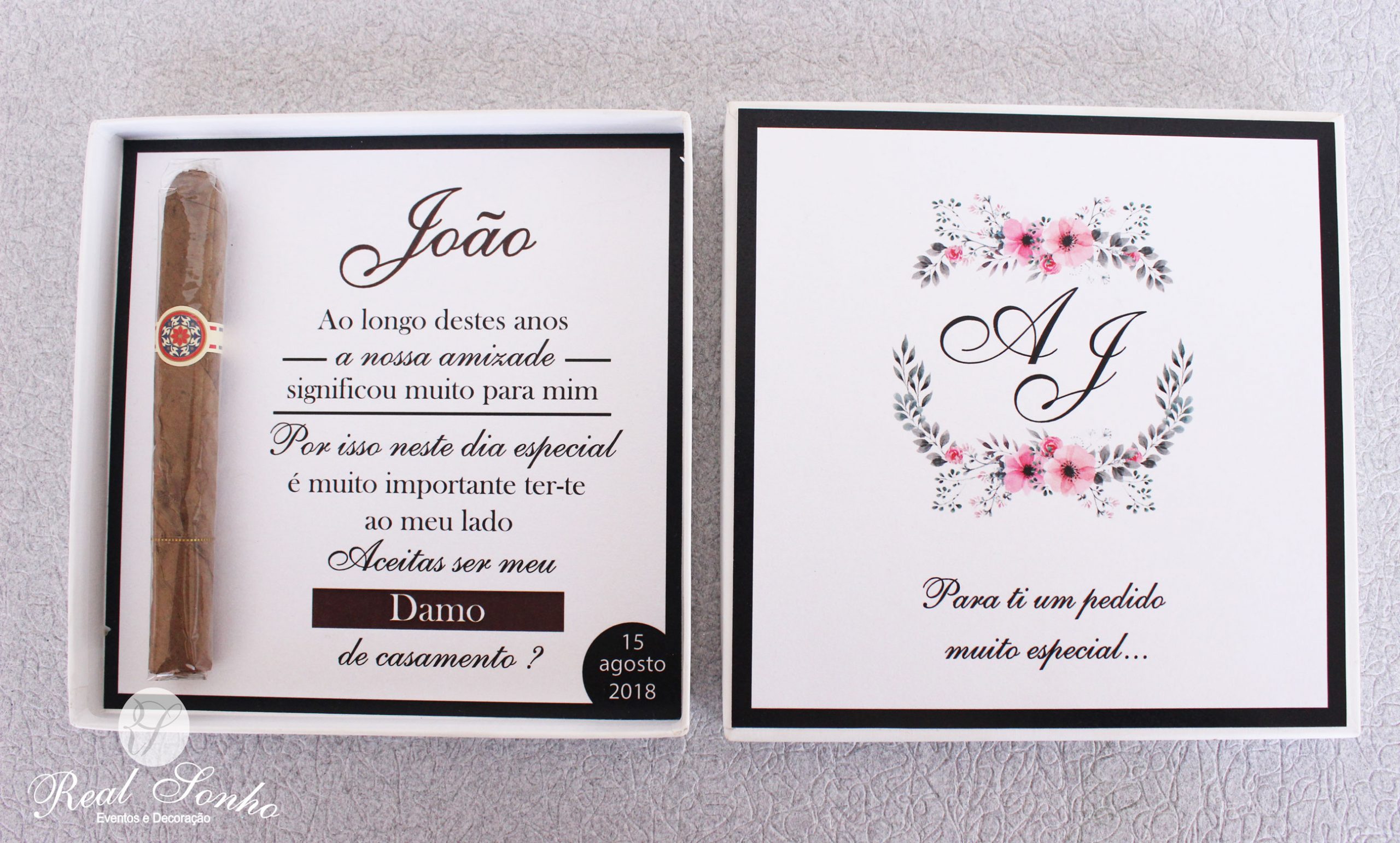 Convite em forma de caixa rija para padrinho de casamento.