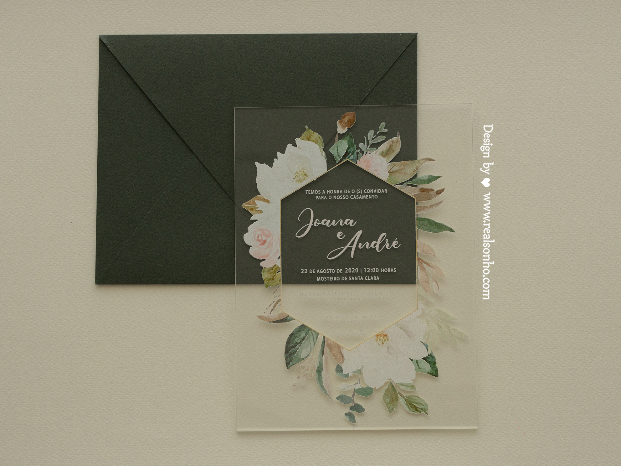 Convite:  impressão UV em acrílico