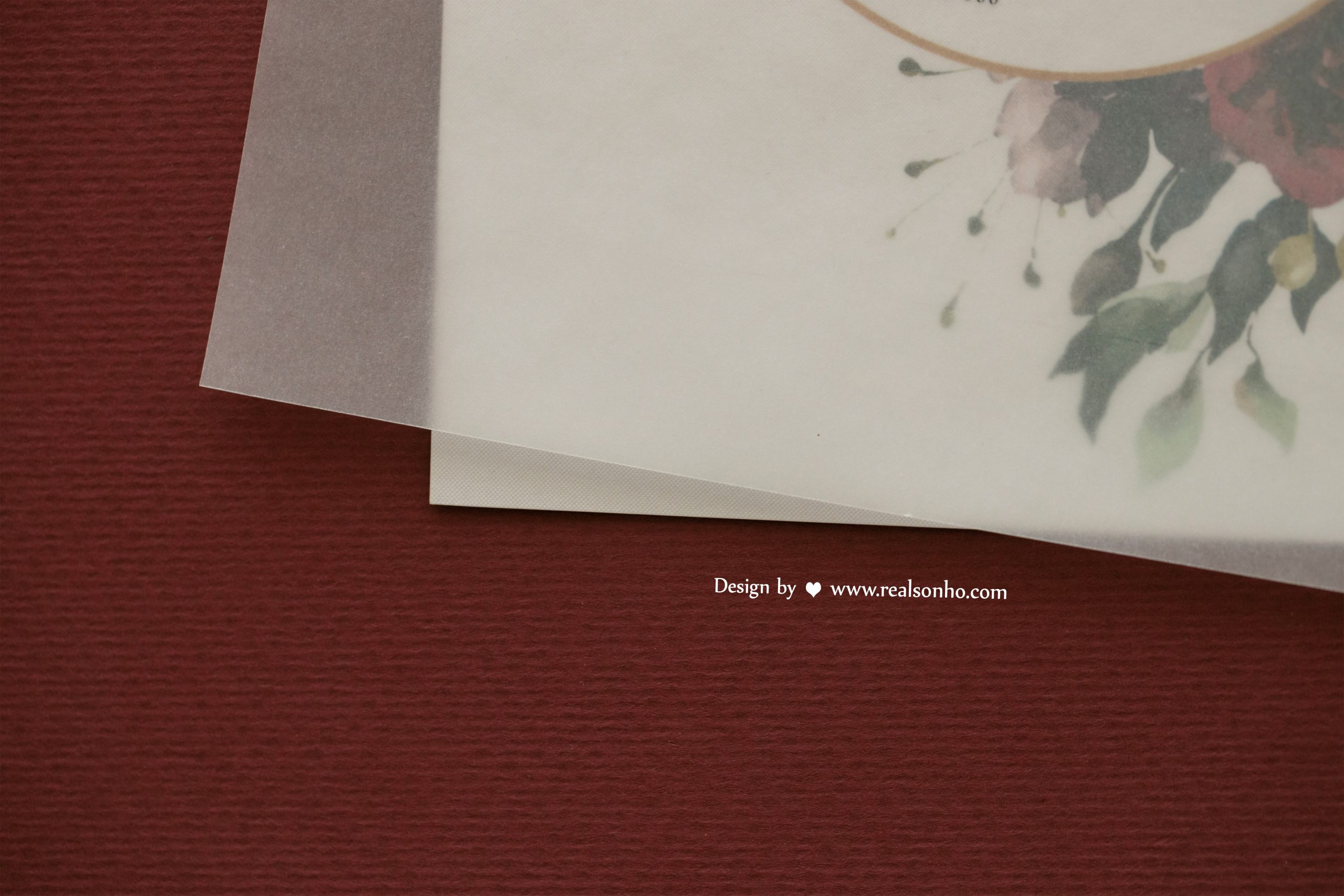 - impressão floral em papel branco, gramagem 250 gr (parte de trás)