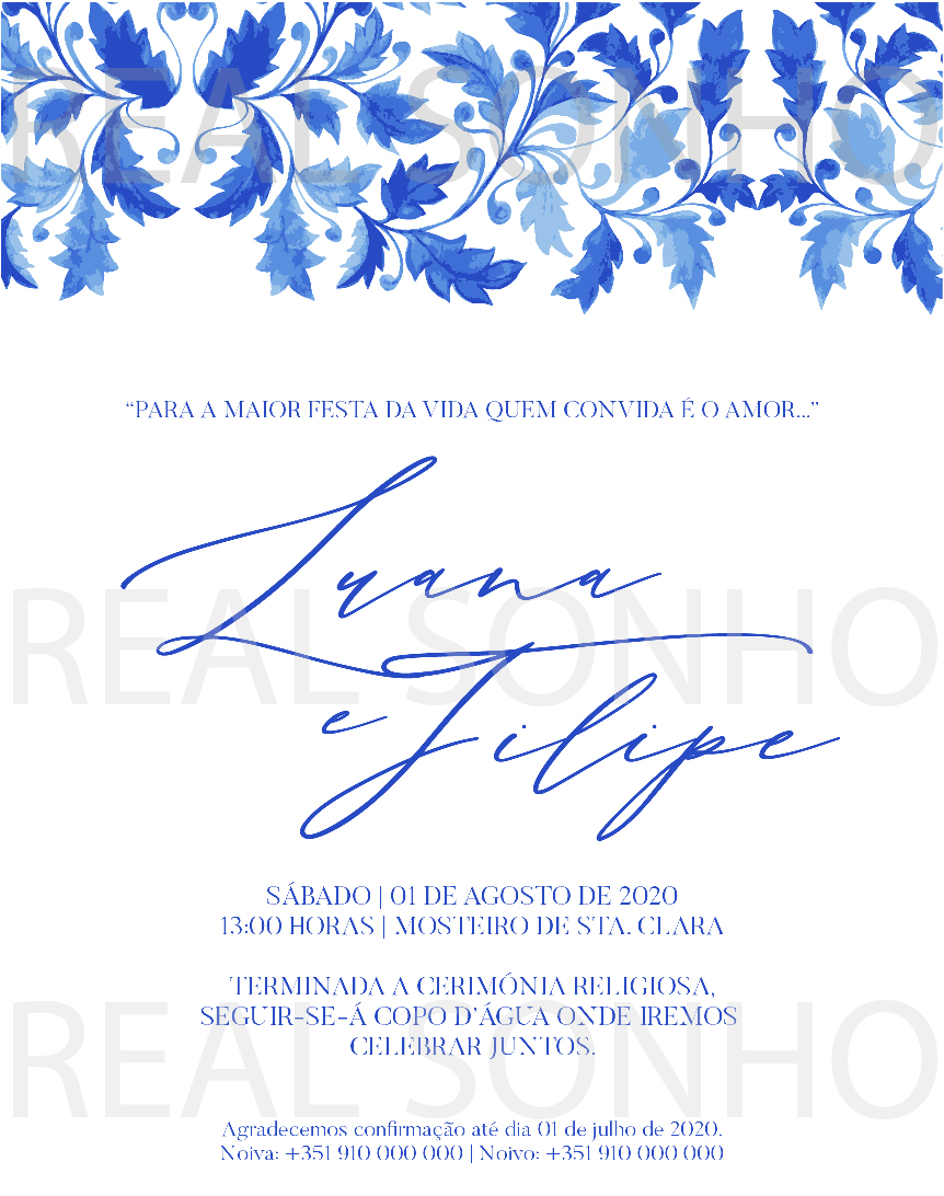 Prazo de envio: confirme por favor através do email geral@realsonho.com