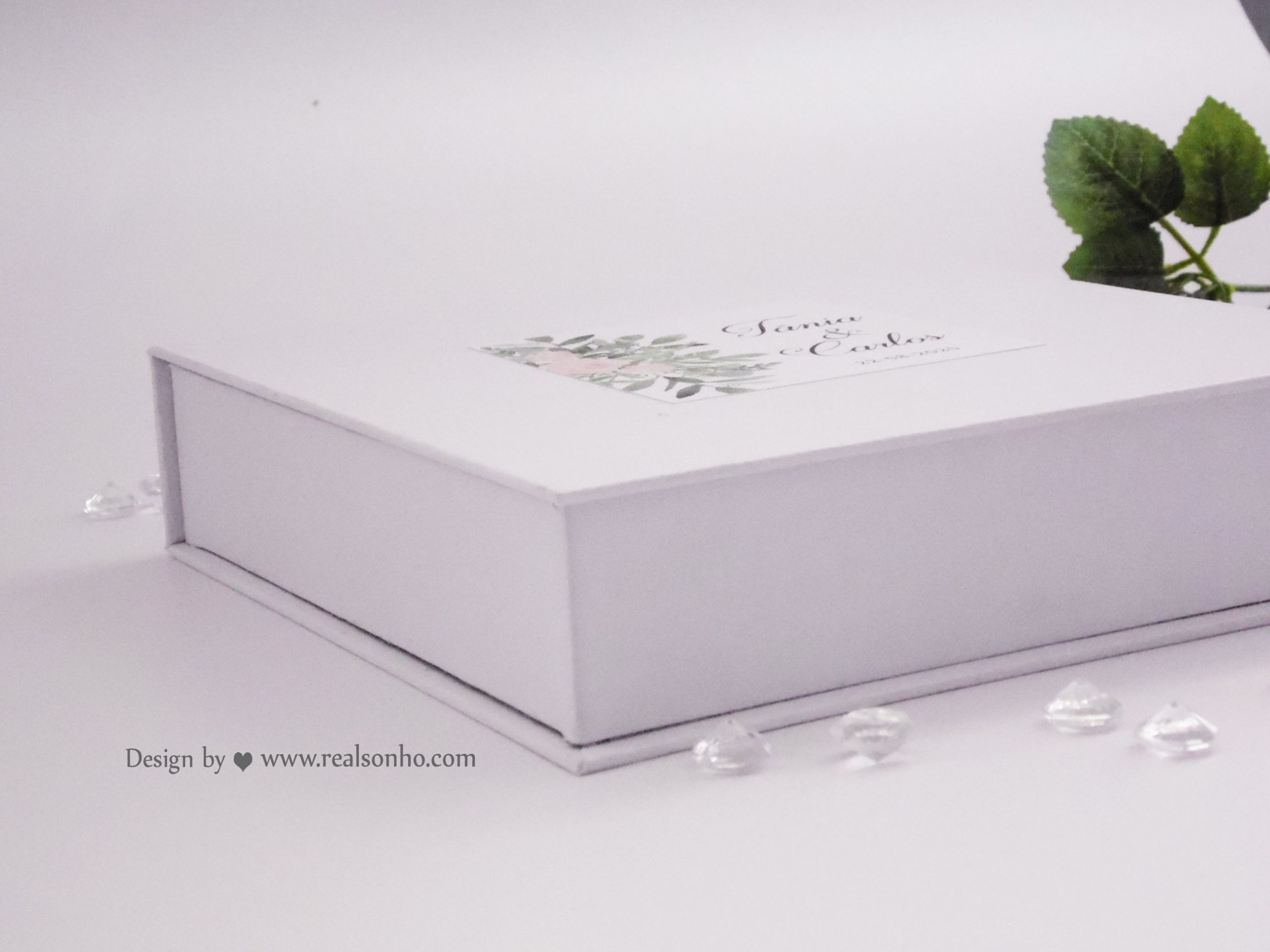 Decoração da caixa: personalizada em função da coleção que escolher ( o convite da imagem está com o design da coleção Green)
