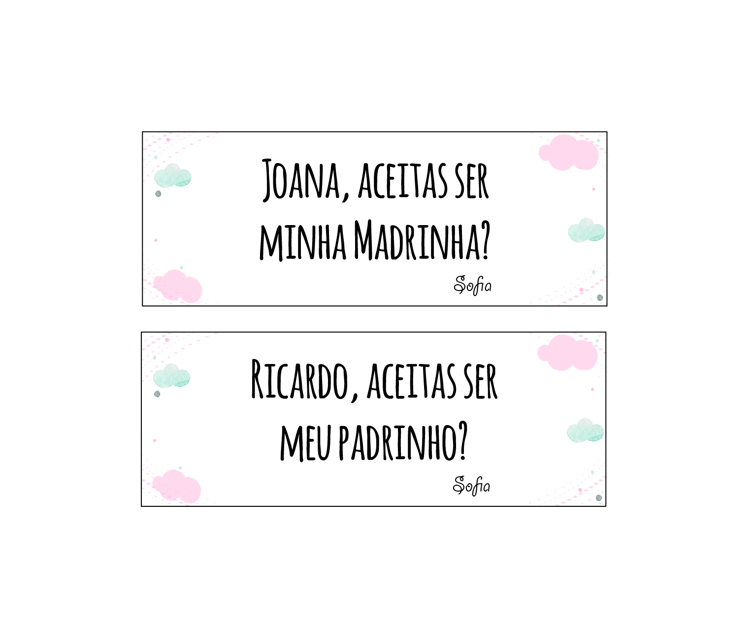 O produto que selecionou é um convite para padrinhos de batismo, por isso, preencha por favor o formulário da secção Dados para o Convite.